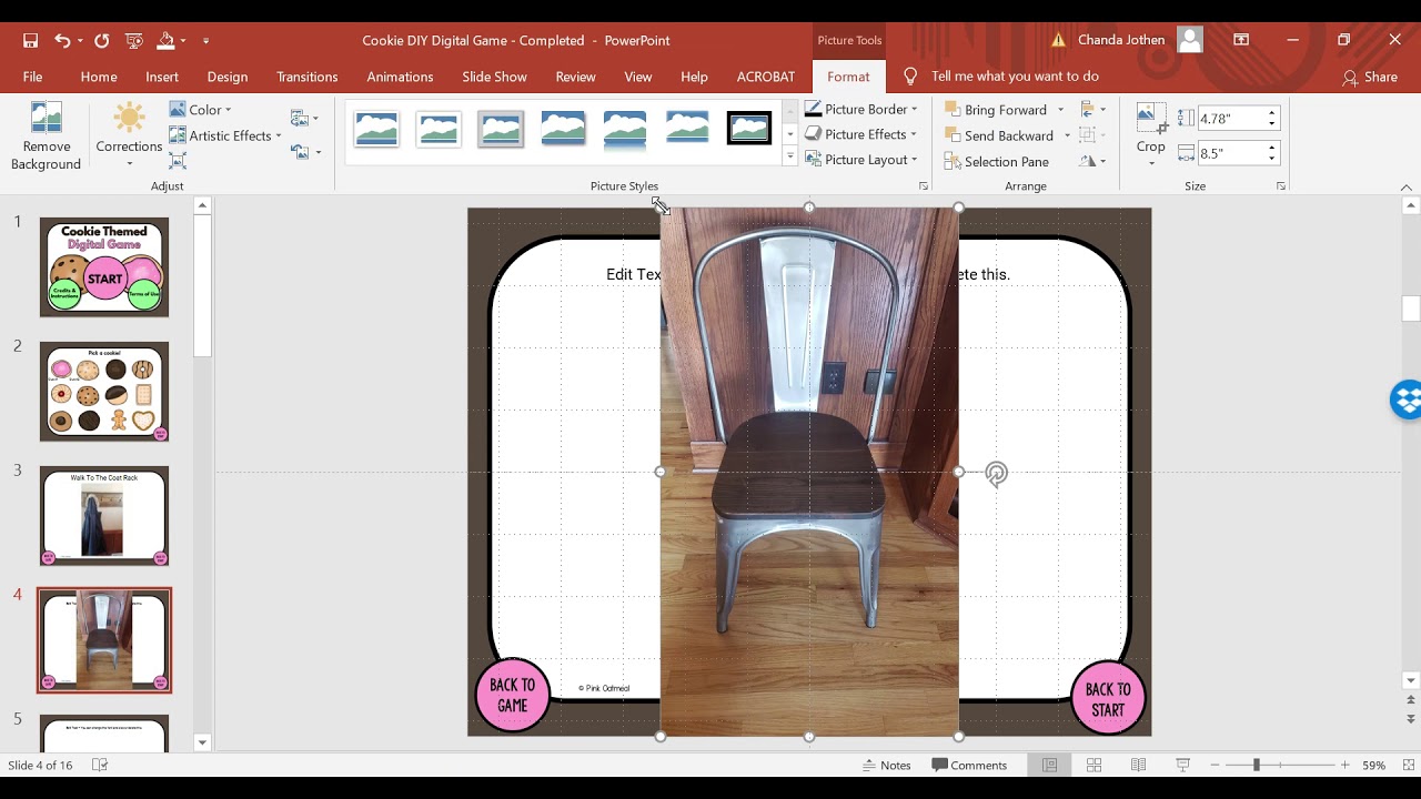 Before starting always remember to use the “save as” feature in PowerPoint or “make a copy” feature in Google Slides, so that you have each custom game saved separately.